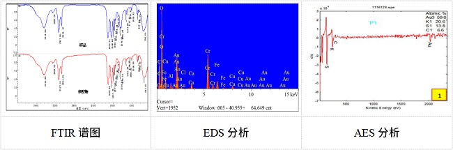該技術是專門針對產(chǎn)品上的微小嵌入異物或表面污染物、析出物的分析技術。例如對表面嵌入或析出的顆粒物、小分子遷移物、斑點、油狀物、霧狀物、橡膠噴霜等異常物質(zhì)進行定性分析,藉此找尋污染源或配方不相容者,是改善產(chǎn)品最常用的分析方法之一。①快速判斷異物或雜質(zhì)的成分,分析產(chǎn)生原因,進行整改提升產(chǎn)品良率;