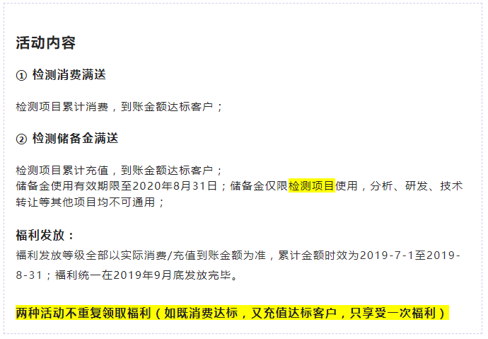 夏日狂歡 充值/消費送好禮,檢測項目低至20元